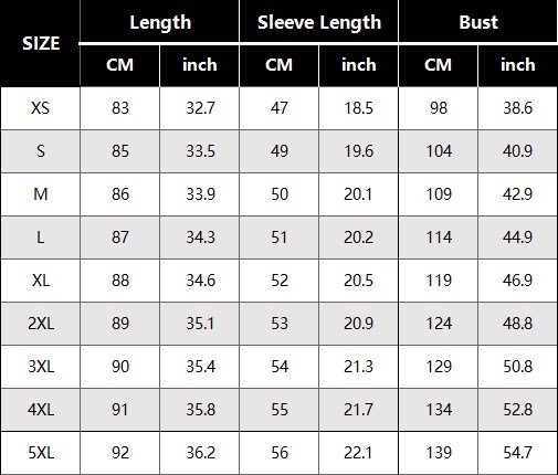 | Size: | XS, S, M, L, XL, 2XL, 3XL, 4XL, 5XL |