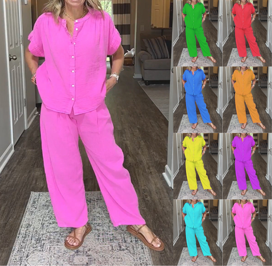 ⏰ LAST DAY SAVE 50% 💥Women's cotton and linen casual solid color 2-piece Set
