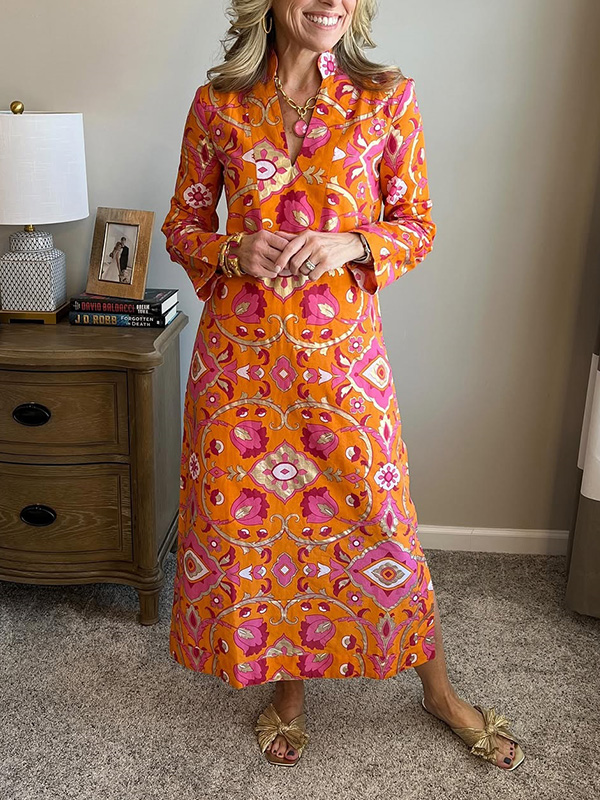 Introducing our Spring Foil Printed V-Neck Dress, designed for the modern woman who values sophistication and style. This dress features a stunning print and elegant maxi length, making it perfect for any occasion.