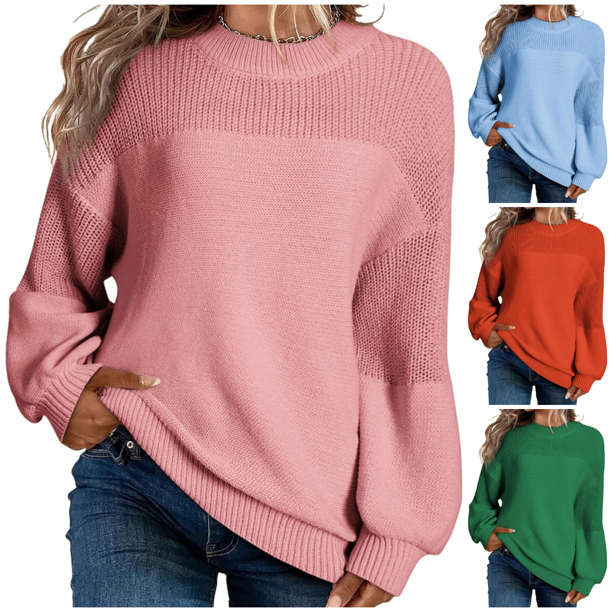 Women's Casual Long Sleeve Loose Round Neck Knit Solid Colour Pullover Sweater